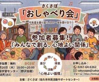 【主催:さくさぽ】 カフェさくさぽ:臼田の活動、みんなで話しませんか?