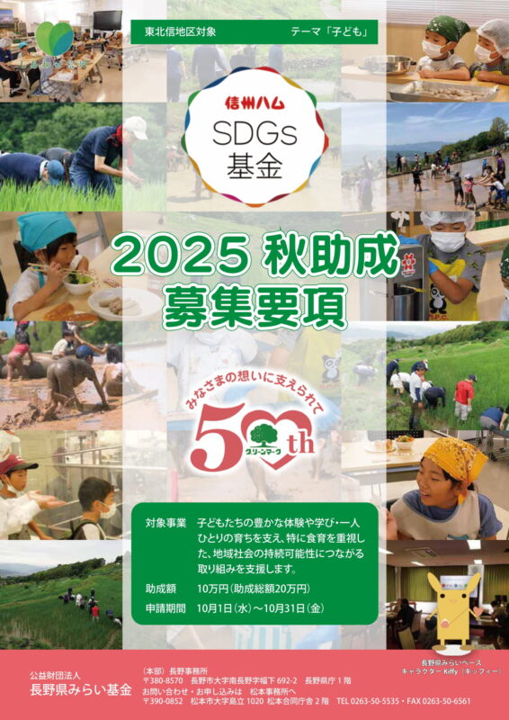 【公益財団法人長野県みらい基金】信州ハムSDGs基金2025秋助成