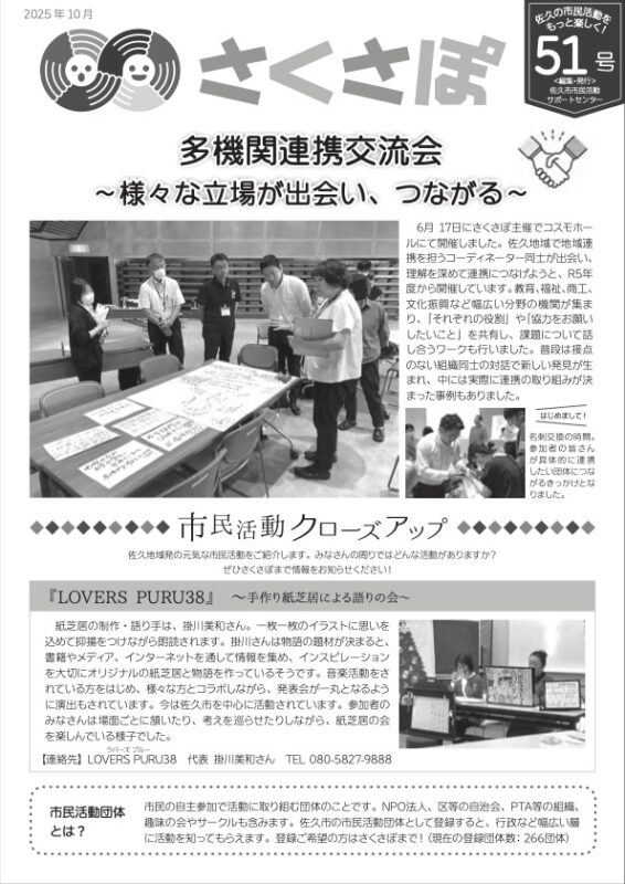 佐久市市民活動サポートセンターが発行する、機関紙「さくさぽ」の最新51号が発行されました。