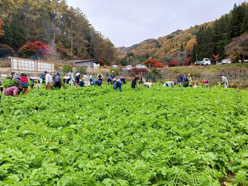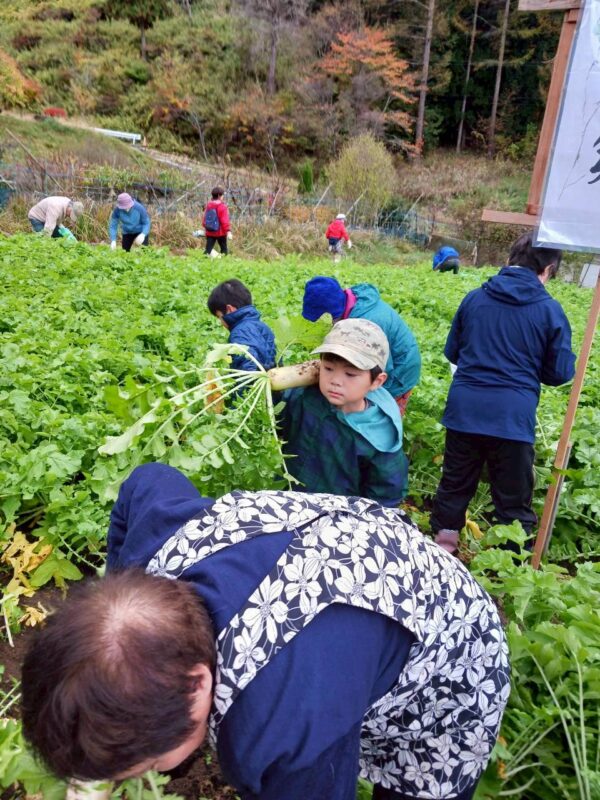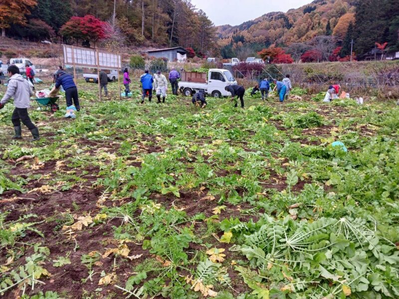 参加者の勢いは目覚ましく、用意された約5,000本の大根は、わずか1時間足らずであっという間に収穫され、その賑わいぶりを物語っていました。