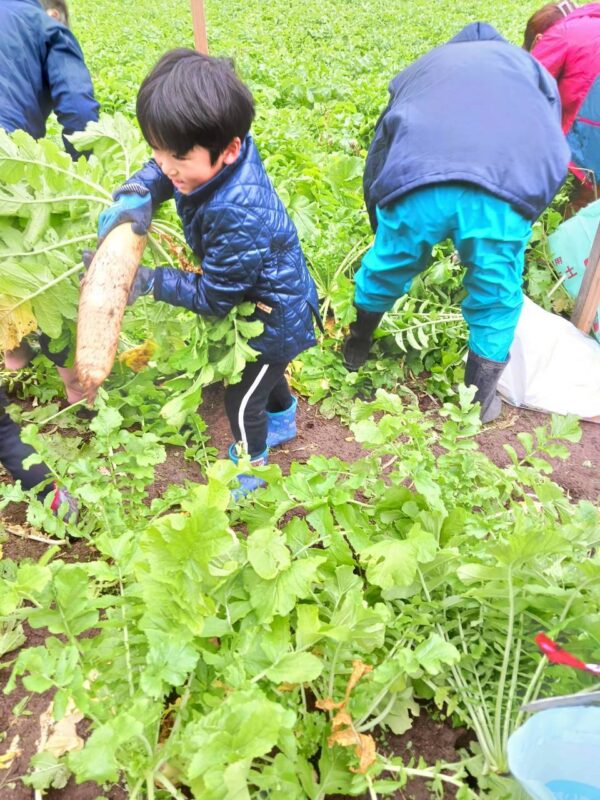 収穫を終えた参加者には、引き抜かれたばかりの新鮮な大根を使った豚汁や、温かいふろふき大根が振る舞われ、参加者は大満足の様子でした。