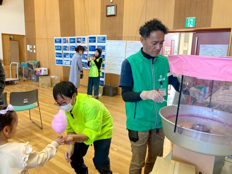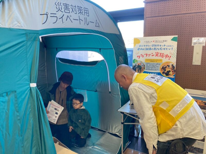 ゲームや工作で遊ぶブース、おさがり会、人にやさしい避難所体験や非常食の試食会など、盛りだくさんのブースが並びました。