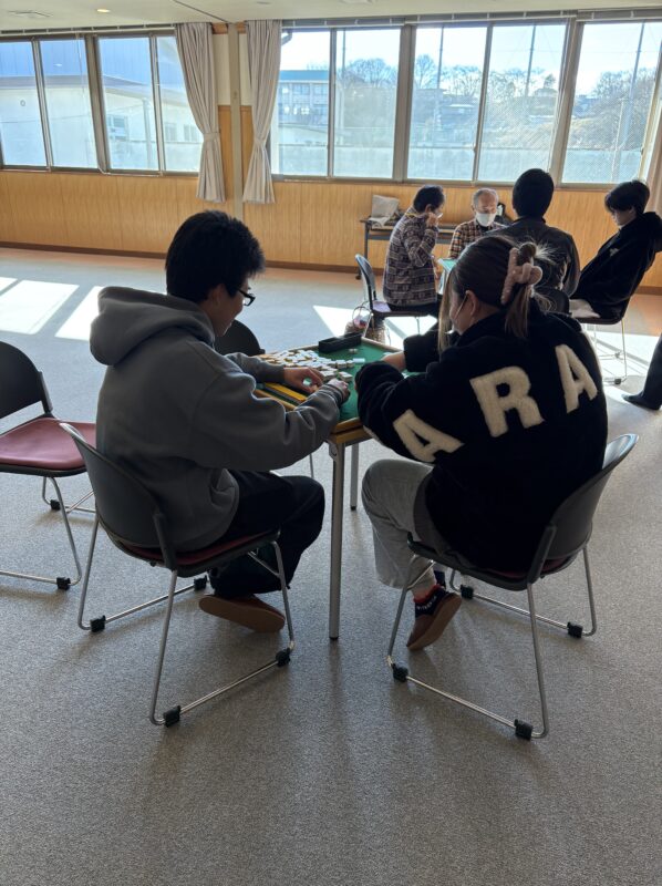 ■初心者も楽しむ健康麻雀(ニコニコ健康麻雀) 「吸わない・飲まない・賭けない」健康麻雀では、生徒たちも「すごく楽しかった!」と熱中していました。