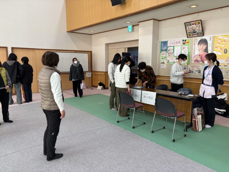 ■健康相談と体力測定(健康相談コーナー) 握力測定や片足立ちなどを通じて、専門スタッフと交流しながら自身の健康について学びました。