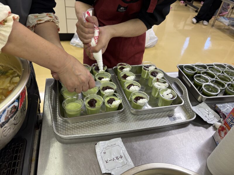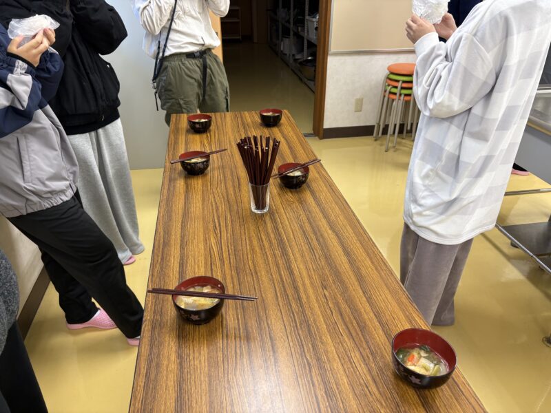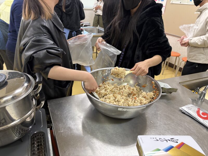 地元の野菜をふんだんに使った調理ブースです。「ミナの畑」の野菜を用いた豚汁や炊き込みご飯、デザートが作られ、会場内には美味しい匂いが広がり生徒たちは母ちゃんの味を堪能しました。