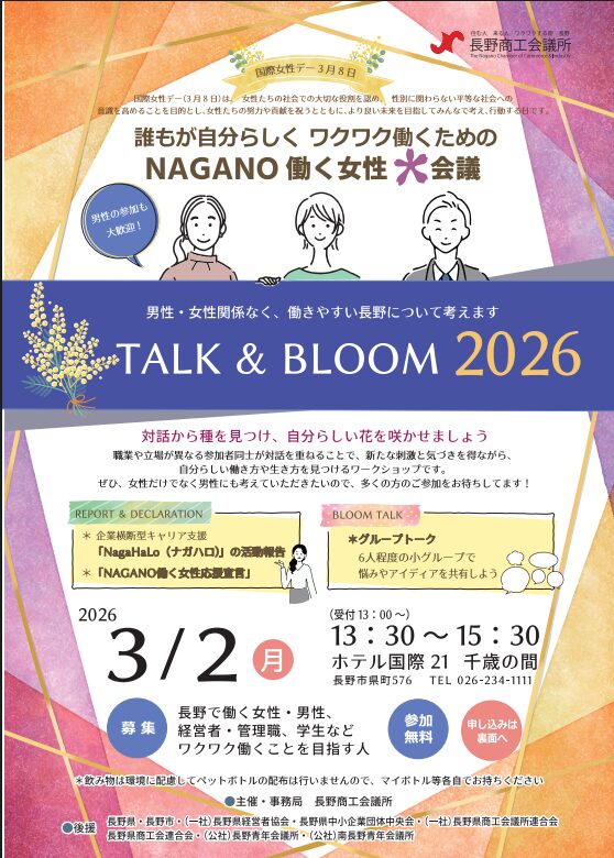 次回は2026年3月2日にNAGANO働く女性大会議 TALK&BLOOM2026 が開催予定です。