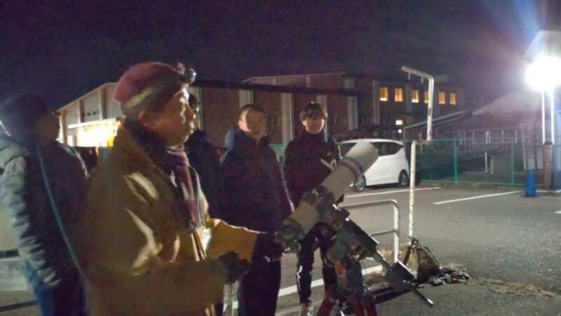 奇跡の晴天!本格的な天体観測 寒い日でしたが見事快晴に!星空案内人の解説を聞きながら、望遠鏡で木星や月面のクレーターを観察!