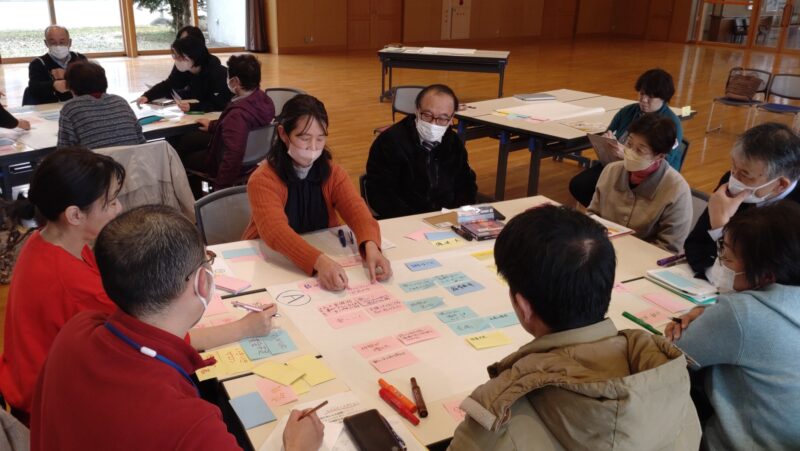 3月13日にカフェさくさぽ・出前講座「地域の活動みんなどうしてる?臼田のあれこれをみんなで話し合おう!」を臼田あいとぴあにて開催しました。当日は14名の方が参加し、臼田の「やりたい!」が交差する、熱いひとときになりました。