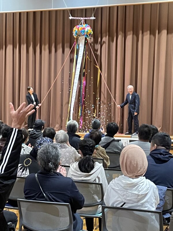開会では20周年を記念したくす玉割りと「社協20年の歩み」のビデオ紹介があり、峰村実行委員長からは「障がいがあってもなくても、子どもから高齢の方までやさしくて楽しい会にしましょう」とあいさつがありました。