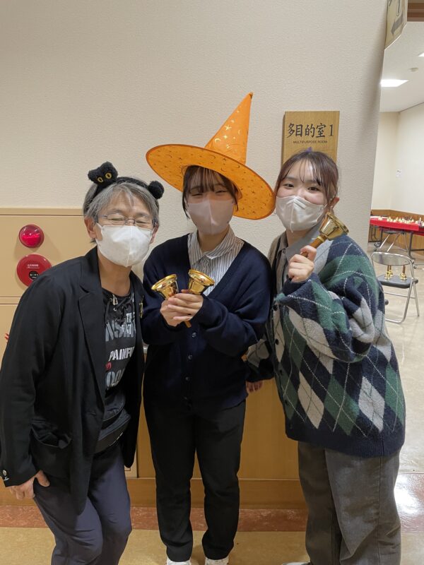 実行委員長の峰村陽子さん(左)と忙しく動いていたボランティアの学生さん。
