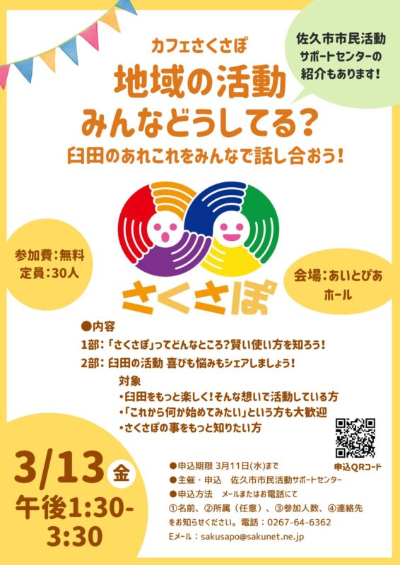 #佐久市#臼田#さくさぽ#市民活動#地域活性化#まちづくり#カフェさくさぽ#交流会
