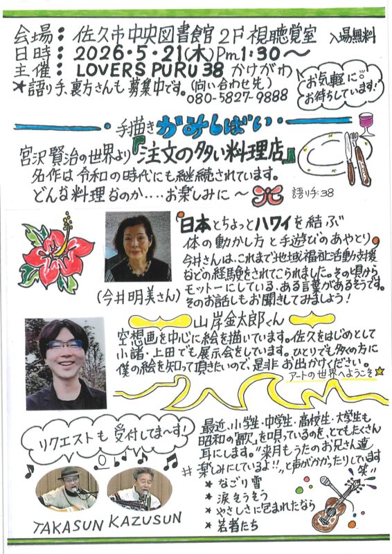 #佐久市 #佐久市中央図書館 #宮沢賢治 #注文の多い料理店 #紙芝居 #昭和歌謡 #地域イベント #入場無料