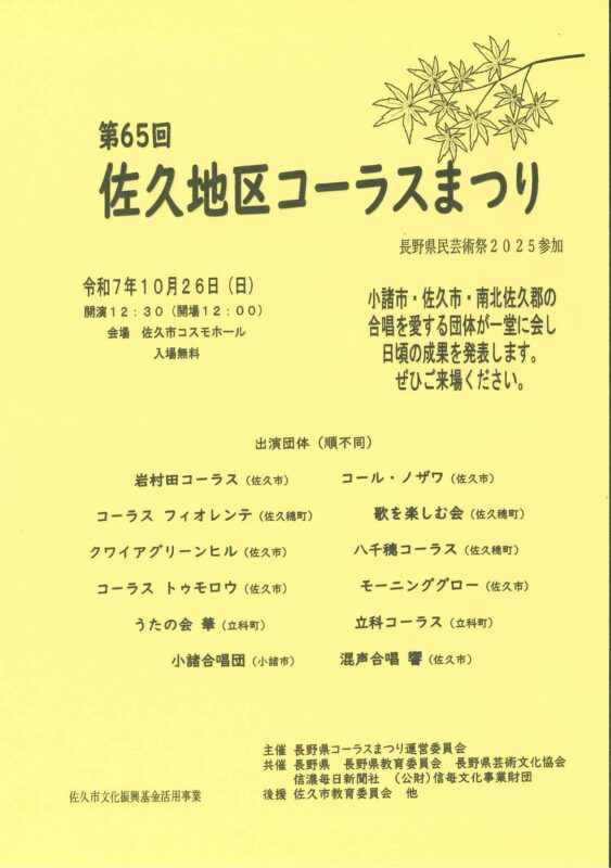 【主催:長野県コーラスまつり運営委員会】第65回 佐久地区コーラスまつり(長野県民芸術祭2025参加)
