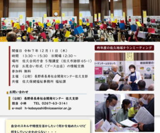 【主催:長野県長寿社会開発センター佐久支部】 12/21(木)開催 佐久地域タウンミーティング「地域づくり 出会いのひろば」
