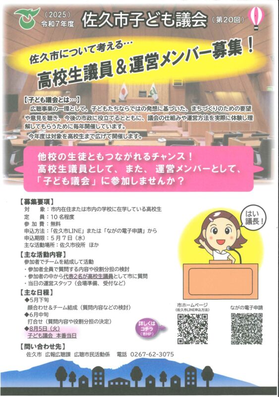 佐久市について考える…高校生議員 & 運営メンバー募集!