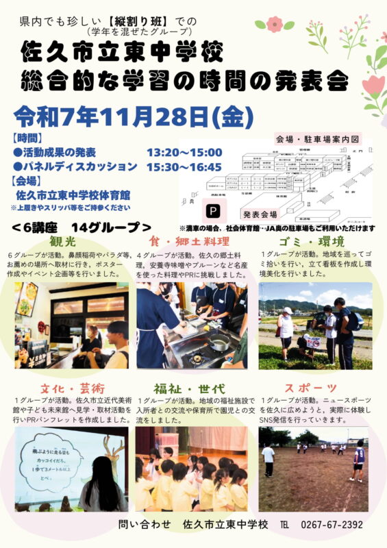 問い合わせ 佐久市立東中学校 TEL 0267-67-2392