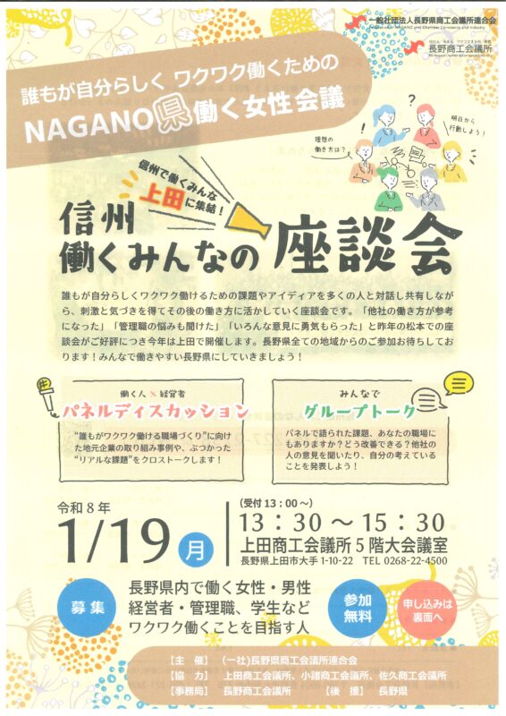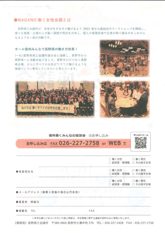 募集対象者:長野県内で働く女性・男性、経営者・管理職、 学生など