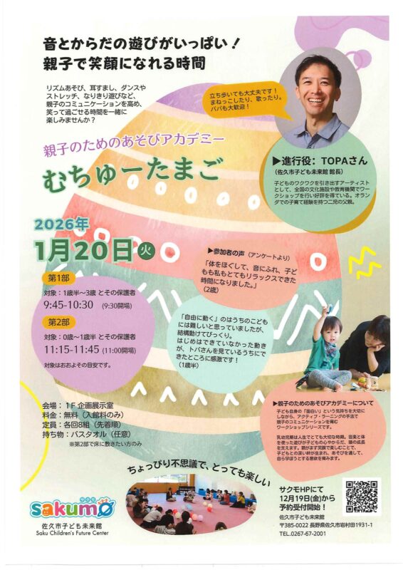対象:1歳半~3歳とその保護者 9:45-10:30 (9:30開場)