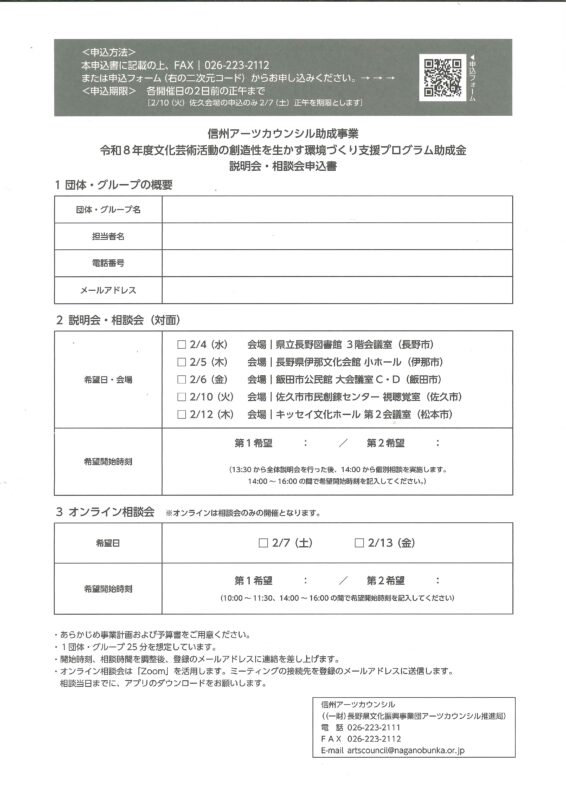 最新情報は信州アーツカウンシル公式webサイトにてお知らせいたします。