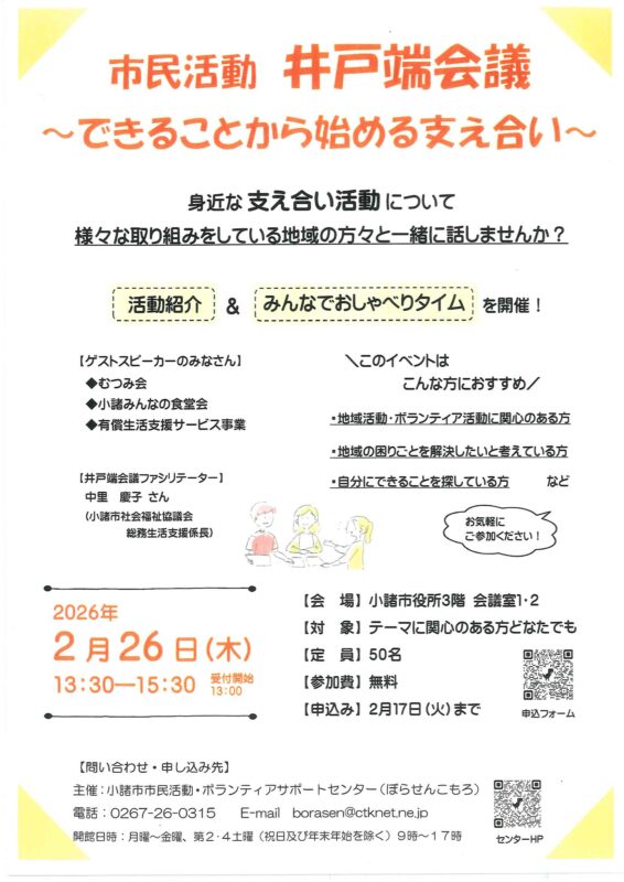 主催:小諸市市民活動・ボランティアサポートセンター(ぼらせんこもろ)
