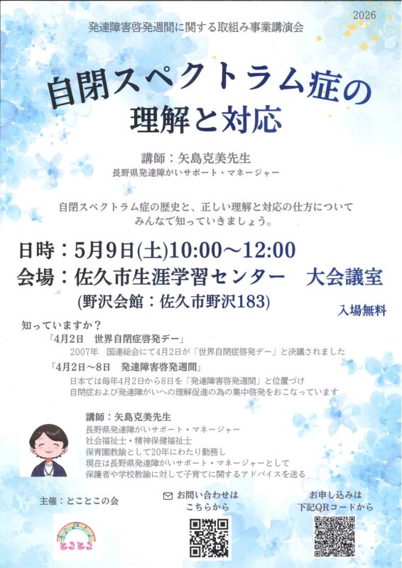 【主催:とことこの会】発達障害啓発週間に関する取組み事業講演会「自閉スペクトラム症の理解と対応」