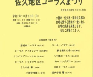 【主催:長野県コーラスまつり運営委員会】第65回 佐久地区コーラスまつり(長野県民芸術祭2025参加)