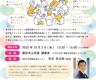 【主催:NPO法人子どもサポートチームすわ】不登校支援の「これまで」と「これから」―信州型フリースクール認証制度がめざすものー講演学習会開催