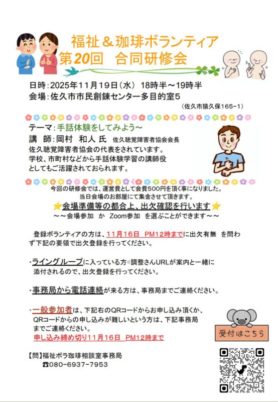 【問】福祉ボラコーヒー相談室事務局 ☎080-6937-7953