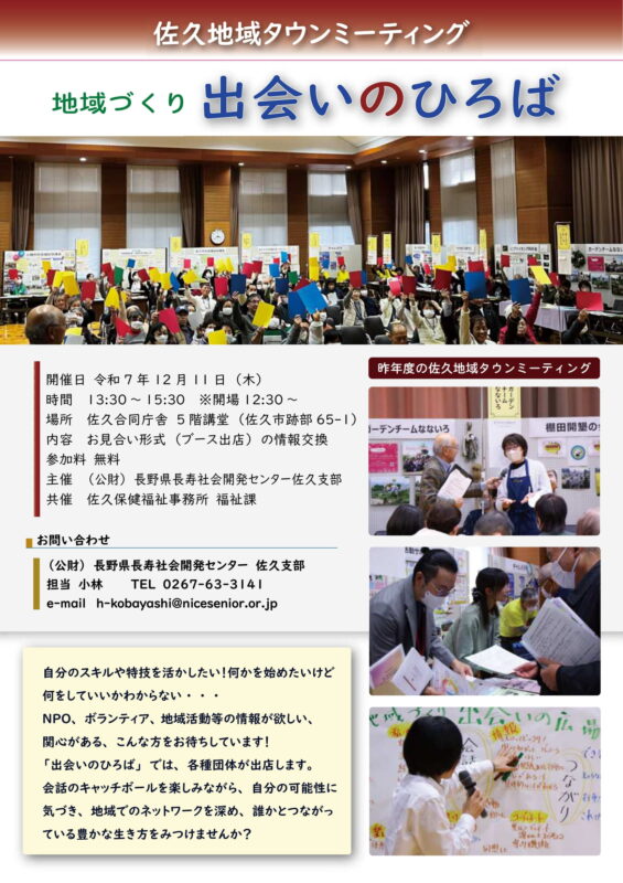 | 主 催 | (公財) 長野県長寿社会開発センター佐久支部 |