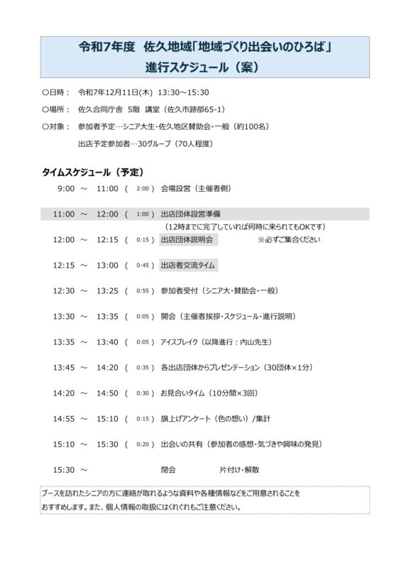 | 共 催 | 佐久保健福祉事務所 福祉課 |