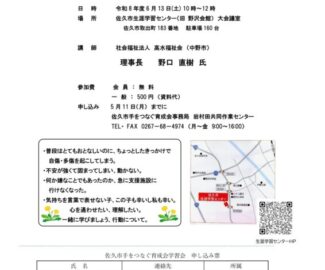 佐久地域の市民活動に関する講座・イベント情報です。お問合せは各主催者へお願いします。イベントカレンダーはこちら